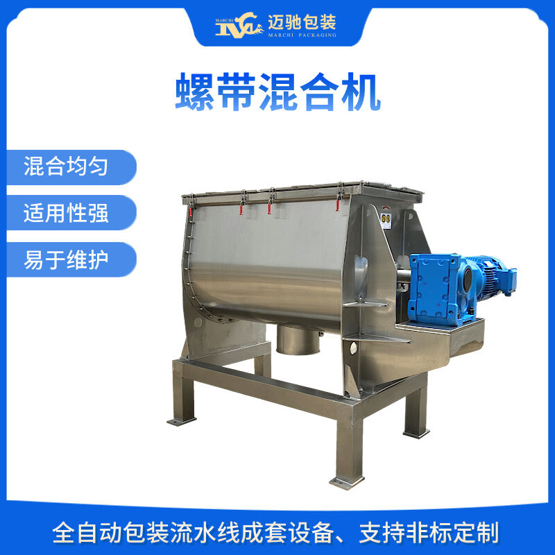 迈驰是一家专业生产卧式螺带混合机的厂家,适用范围广、混合均匀度高、混合时间短、装载系数大。欢迎大家来工厂实地考察,案例多,经验广,26年包装生产线行业经验,助力生产企业降本增效、提高产能。