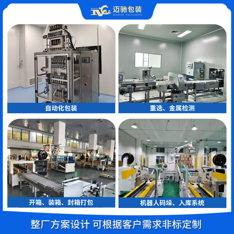 迈驰是一家专业生产全自动多列颗粒包装机整线厂家,可根据客户不同物料特性定制一对一方案,可根据产量定制列数-有序理料装盒-自动装箱-机器人码垛。整厂方案设计,支持非标定制。26年包装行业经验,助力生产企业稳定生产,提高产能。