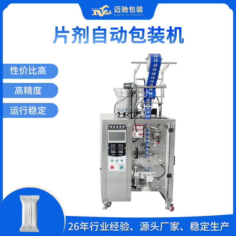 迈驰包装设备是一家26年全自动背封片剂包装机工厂,可包装原料药、片剂、咀嚼片、泡腾片等,您需求的片剂袋装包装机、片剂包装机厂家可以点击详情了解更多。