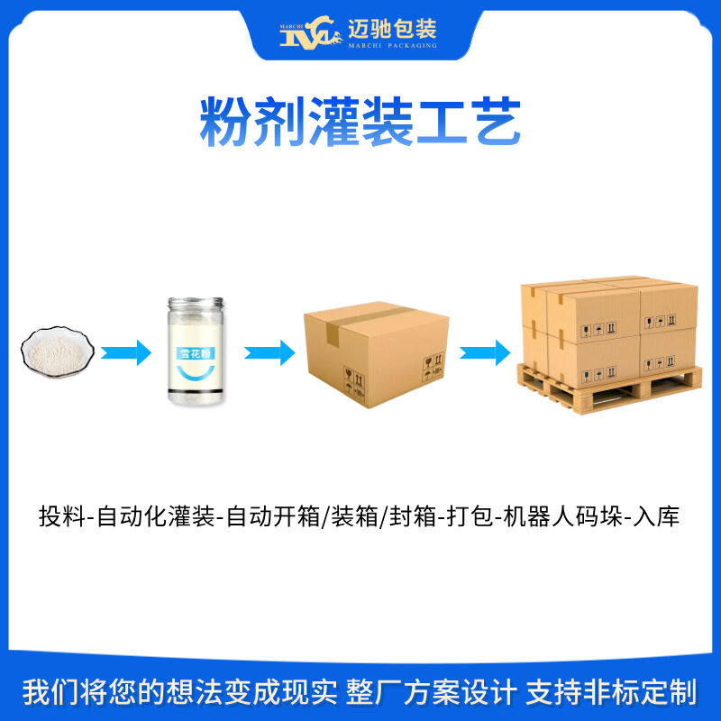 迈驰,是一家专业生产粉末灌装机生产线的生产厂家,无扬尘、高精度,可根据物料不同特性定制包装流水线设备,一对一定制化服务,26年包装行业经验助力生产企业将本增效,提高产能。